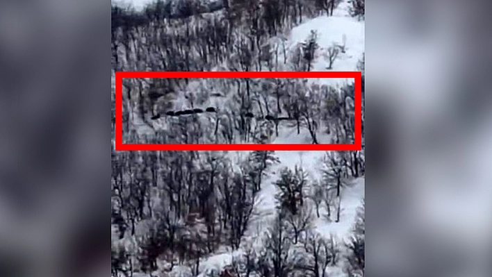 Elazığ'da kar üzerinde koşan domuz sürüsü cep telefonu kamerasıyla görüntülendi. Sürüyü kayda alan vatandaşın, 'Ordu geliyor' sözleri dikkat çekti.