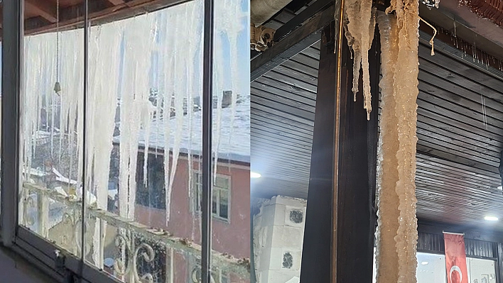 Elazığ'da hava sıcaklığının eksi 22 dereceye kadar düşmesiyle özellikle Karakoçan ilçesinde bina saçaklarında metrelerce uzunlukta buz sarkıtları oluştu.