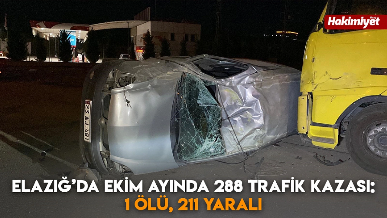 Elazığ'da ekim ayında meydana gelen 288 kazada 1 kişi hayatını kaybederken, 211 kişi yaralandı. Kazaların yarısı maddi hasarlı, diğer yarısı ise yaralanmalı olarak kayıtlara geçti.