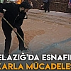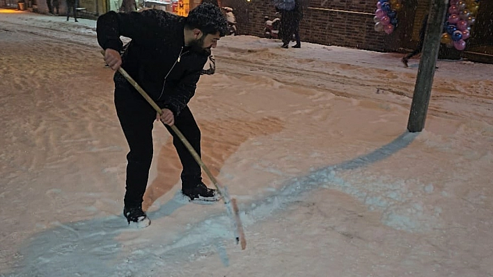 Elazığ'da etkili olan kar yağışının ardından esnaflar iş yerlerinin önünde biriken karları temizlemek için çalışma başlattı.