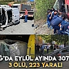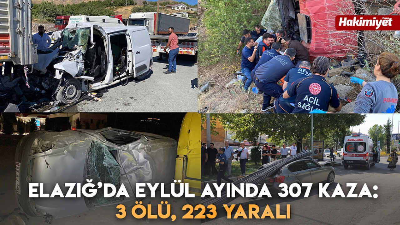 Elazığ'da eylül ayında meydana gelen 307 trafik kazasında 3 kişi yaşamını yitirirken, 223 kişi yaralandı.