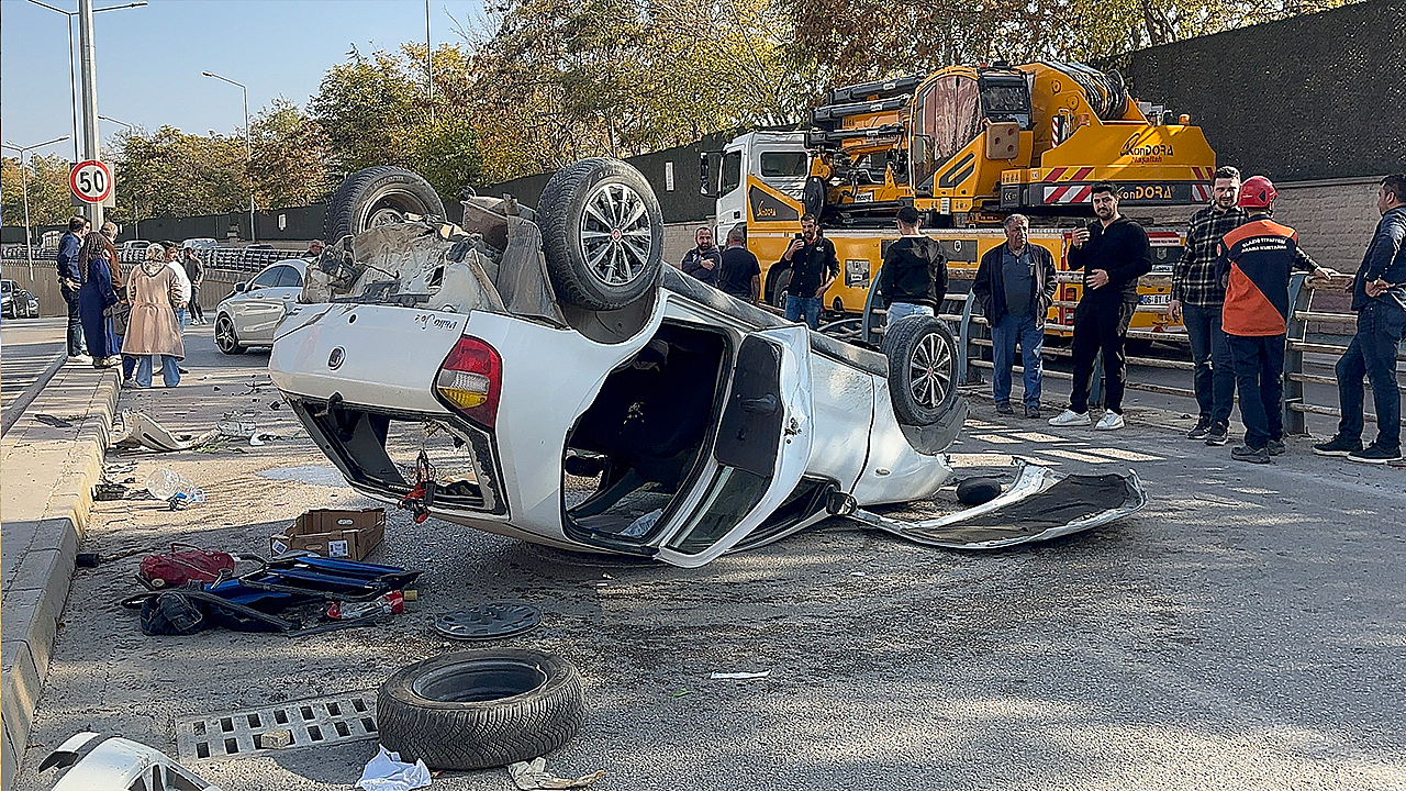 Kaza, Atatürk Bulvarı alt geçidinde meydana geldi. Edinilen bilgiye göre, 06 DB 4287 plakalı otomobil, sürücüsünün direksiyon hakimiyetini kaybetmesi sonucu karşı şeride geçerek, 23 AFN 792 plakalı otomobile ve ardından duvara çarptı. Otomobil çarpmanın etkisiyle ters dönerken kazada 2 kişi yaralandı. Haber verilmesi üzerine olay yerine sağlık, itfaiye ve polis ekibi sevk edildi. Yaralılar, ambulanslarla kentteki hastanelere kaldırılarak tedavi altına alındı.