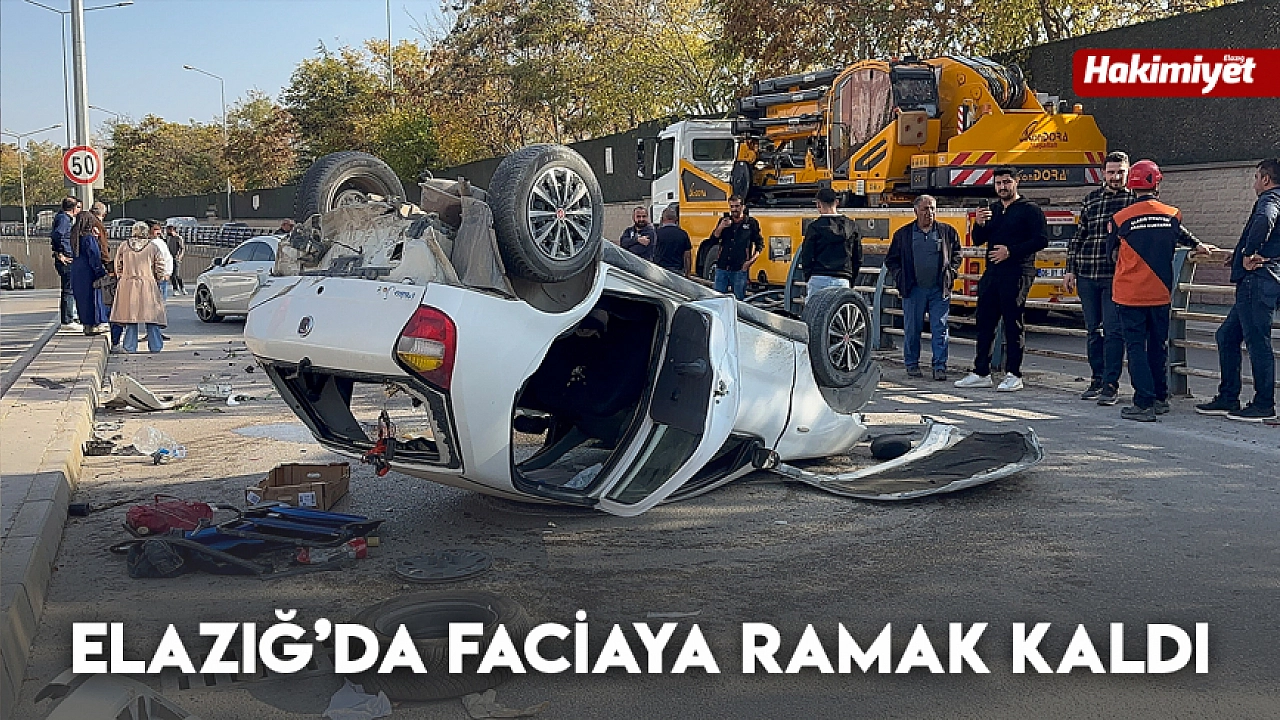 Elazığ'da bir otomobil karşı şeride geçerek başka bir otomobile ve duvara çarpan otomobil ters dönerek durabildi, kazada 2 kişi yaralandı.