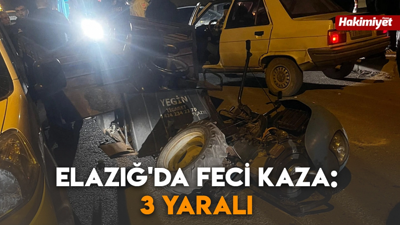 Baskil ilçesinde çapa makinesi ile otomobilin çarpışması sonucu 3 kişi yaralandı.