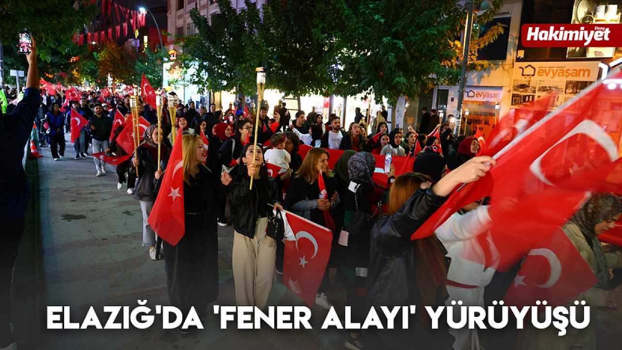 29 Ekim Cumhuriyet Bayramı'nın 102. yılı kutlamaları kapsamında Elazığ'da ''Fener Alayı'' yürüyüşü düzenlendi. Yürüyüş, 15 Temmuz Demokrasi Meydanı'nda başladı. Marşlar söylenerek yapılan yürüyüş, Cumhuriyet Meydanı'nda son buldu. Yürüyüşe, Vali Numan Hatipoğlu, 8. Kolordu Komutanı Tümgeneral Ümit Durmaz, Belediye Başkanı Şahin Şerifoğulları, Fırat Üniversitesi Rektörü Prof. Dr. Fahrettin Göktaş, STK temsilcileri, kurum müdürleri, siyasi parti temsilcileri ve çok sayıda vatandaş katıldı.