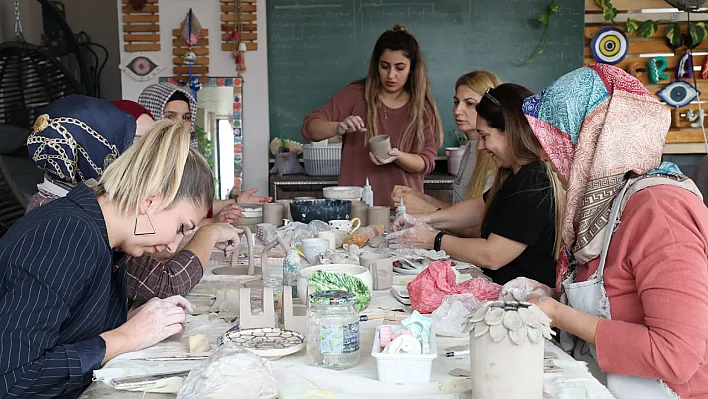 Kursiyerlerden Eda Gürocak ise “Ev hayatından sıkılmış bir anneyim. Hem terapi ve stres atmak hem de farklı insanlarla tanışmak istedim. Ortam çok güzel. Bir aydır kurstayım. Tabak, fincan ve kupalar üretmeye başladım.