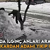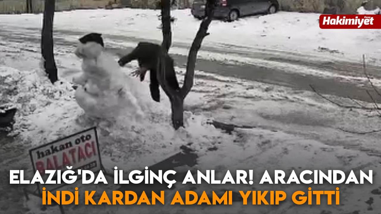 Elazığ'da ilginç anlar! Aracından indi kardan adamı yıkıp gitti