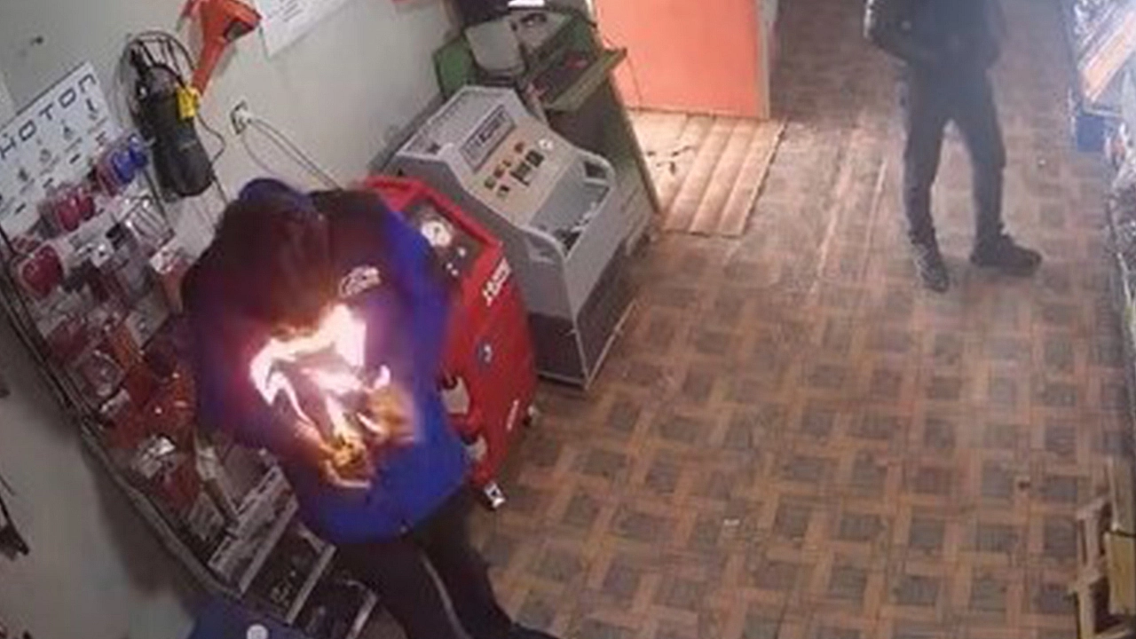 Olay, bir oto elektrik dükkanında meydana geldi. Edinilen bilgiye göre, dükkanda çalışan bir işçi, kabloyu eritmek için çakmağı çakınca o sırada elinde bulunan yapıştırıcı sprey bir anda alev aldı. Yüzü kısa süreliğine alevler arasında kalan çalışan, sprey kutusunu yere attı. Kısa bir şokun ardından kendine gelen çalışan, yerde yanan sprey kutusunu alarak dışarı attı. O anlar kameralara yansıdı.