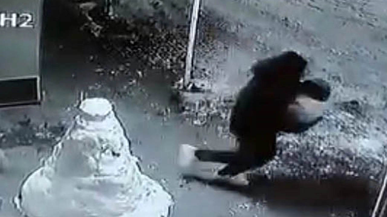 Elazığ'ın Yazıkonak beldesinde bir kişi, iş yerinin önünde bulunan kardan adamın kafasını alarak uzaklaştı. O anlar güvenlik kameralarına saniye saniye yansıdı.