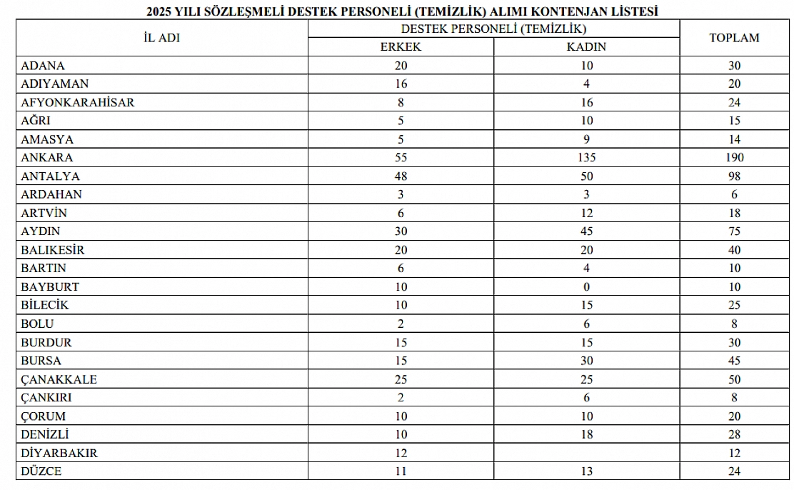 Adaylar, yalnızca bir il ve bir pozisyon için başvuru yapabilecek. Yanlış cinsiyet grubuna yapılan başvurular geçersiz sayılacak.