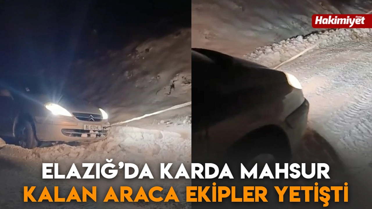 Elazığ'da kar yağışı nedeniyle yolda mahsur kalan araç, İl Özel İdaresi ekiplerinin çalışmasıyla kurtarıldı.