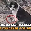 Elazığ'da kedi yakaladığı fareyle oynarken görüntülendi