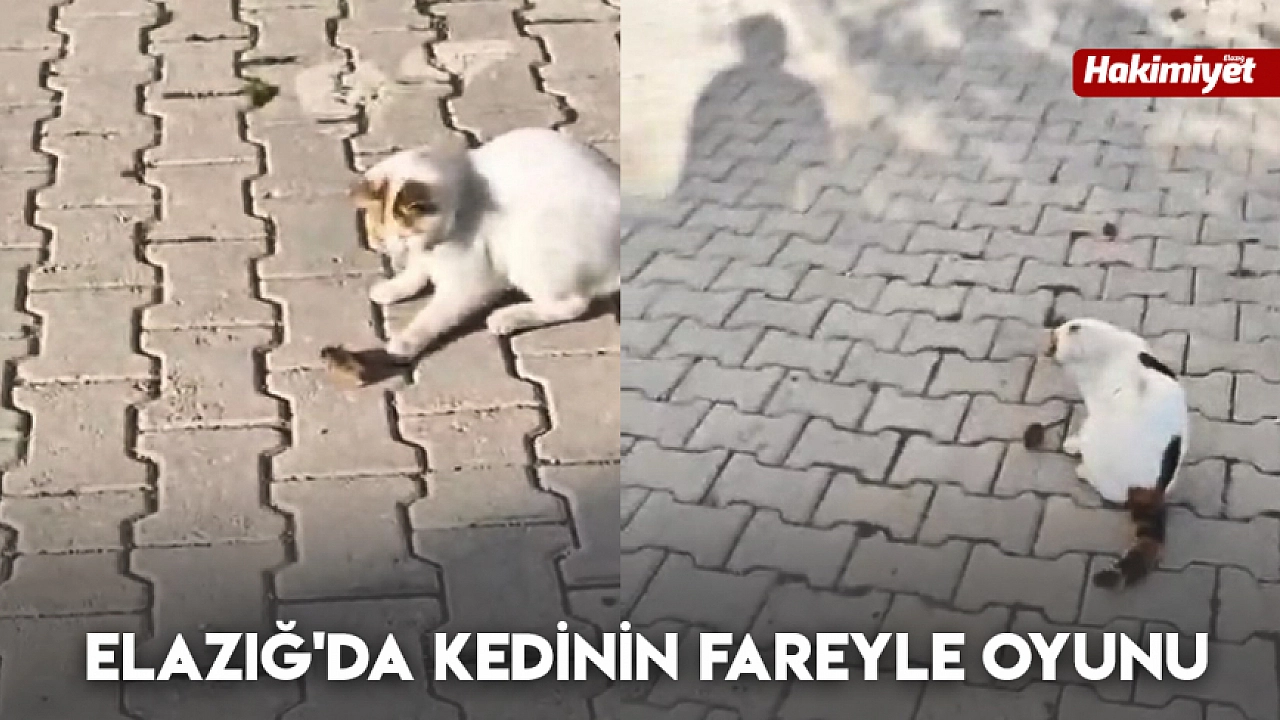 Elazığ'da kedinin fareyle oyunu bir vatandaşın cep telefonu kamerasına yansıdı.