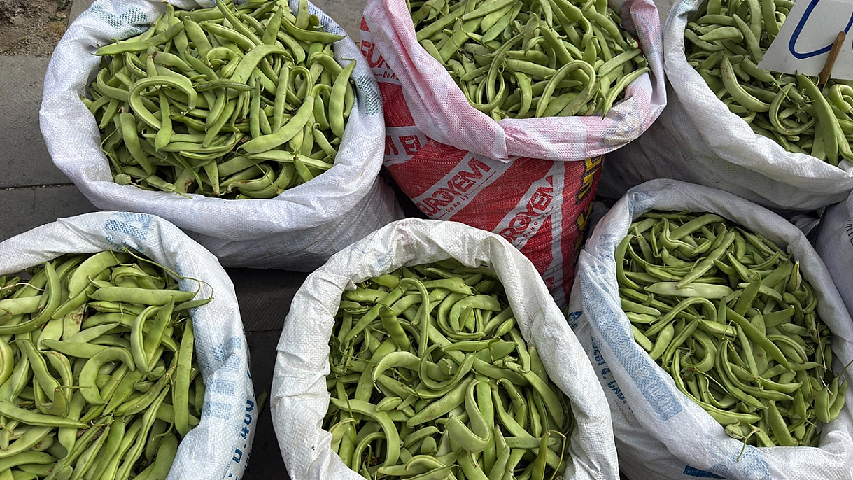 Elazığ’da sonbahar mevsiminin son taze mahsulleri tezgâhlarda yerini almaya başladı. Yurtbaşı beldesi, Karaçor köyleri ve Koçkale köyünden getirilen taze yeşil fasulyeler, şehir merkezinde 60 liradan satışa sunuluyor.