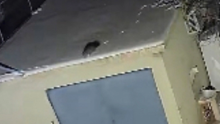 Elazığ'da nesli tükenme tehlikesi altında bulunan sansar, bir evin damında görüntülendi. O anlar güvenlik kamerasına yansıdı.