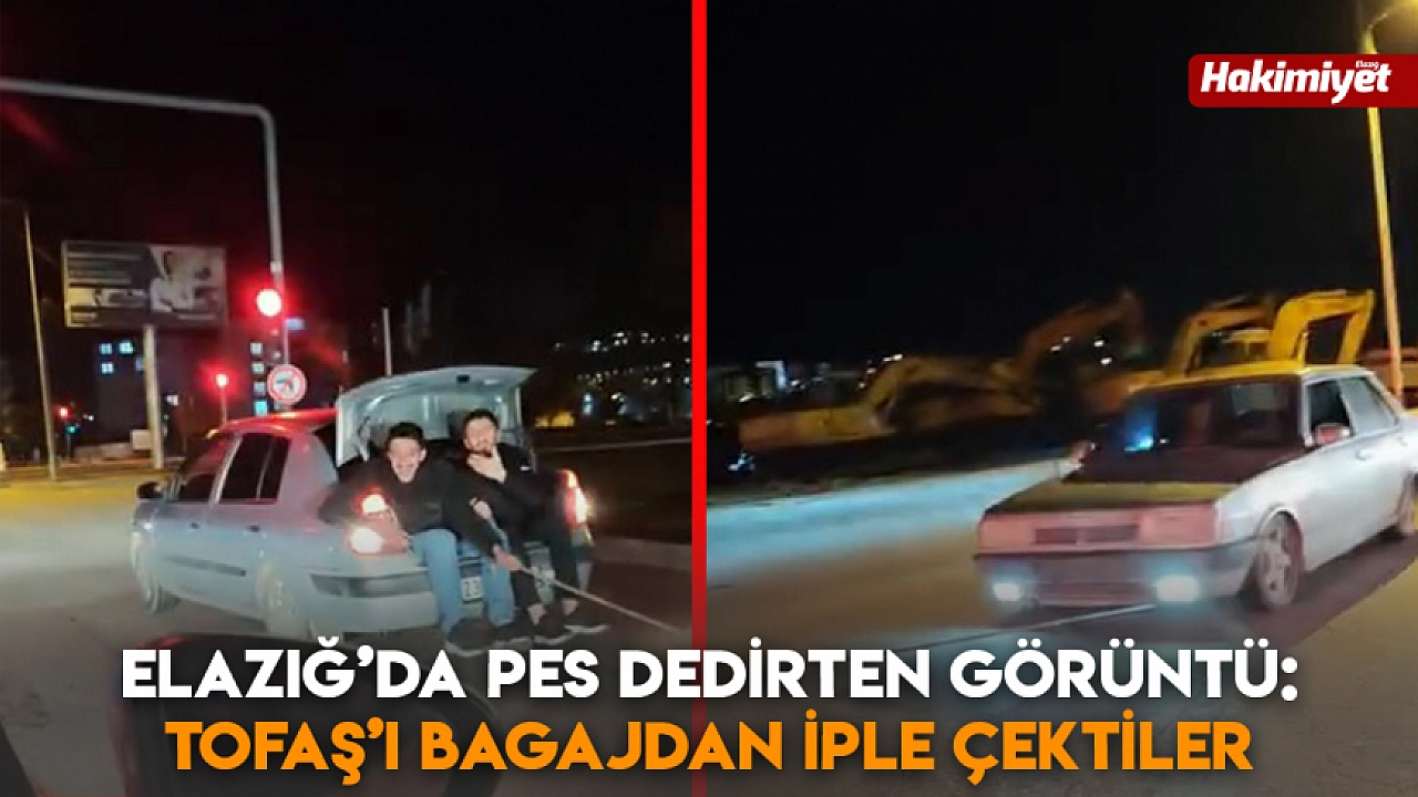Elazığ’da bir aracın bagaj kısmına oturan 2 kişi, arızalanan TOFAŞ Doğan marka aracı iple çekti. Merkez Sanayi Mahallesi’nde meydana gelen olayda, arızalanan araca yardım etmek isteyen arkadaşların tercih ettiği yöntem görenleri hayrete düşürdü.