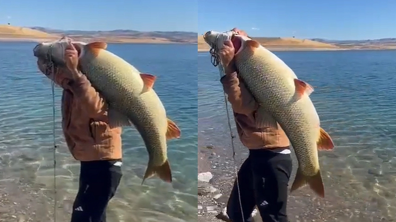 Elazığ'da Ramazan Kortak, avladığı dev balıklarla görenleri şaşkına çeviriyor.