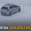 Trafiğin açık olduğu bir alanda yapılan bu tehlikeli eğlence, çevrede bulunanlar tarafından cep telefonu kamerasıyla kaydedildi. Görüntülerde, hem kızakta bulunanların hem de diğer sürücülerin can güvenliğinin tehlikeye atıldığı görüldü.