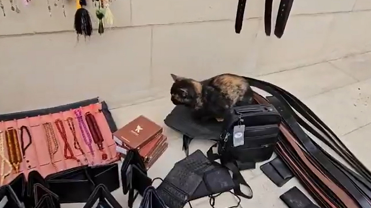 Elazığ’da bir seyyar satıcı sabah geç saatte tezgahını açtığı için beslediği kedi tarafından tepki gördü. Tezgahına dizdiği cüzdan,çanta ve tespih tezgâhlarını deviren kedinin o anları gülümsetti.