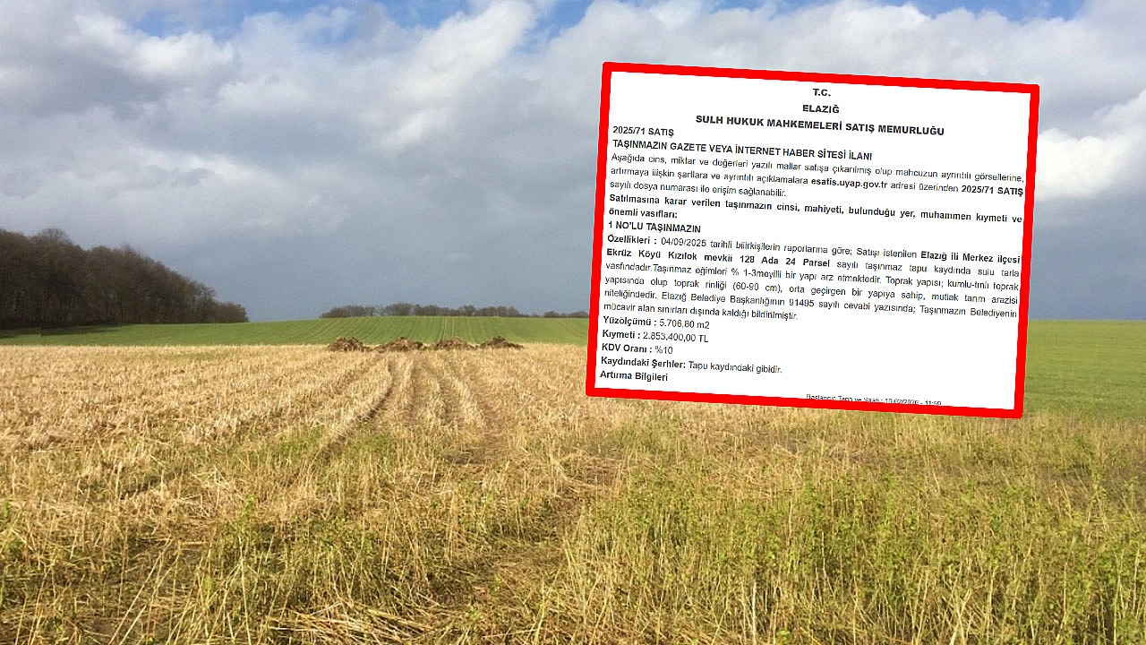 Elazığ'da toprağa yatırım yapmak isteyenler dikkat! İcradan ilana çıkarıldı… Fiyatı dikkat çekiyor