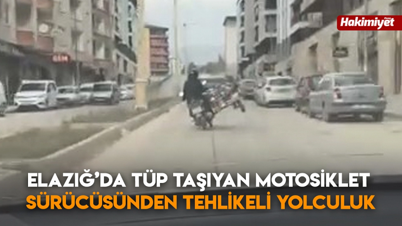 Elazığ'da tüp taşıyan motosiklet sürücüsünden tehlikeli yolculuk