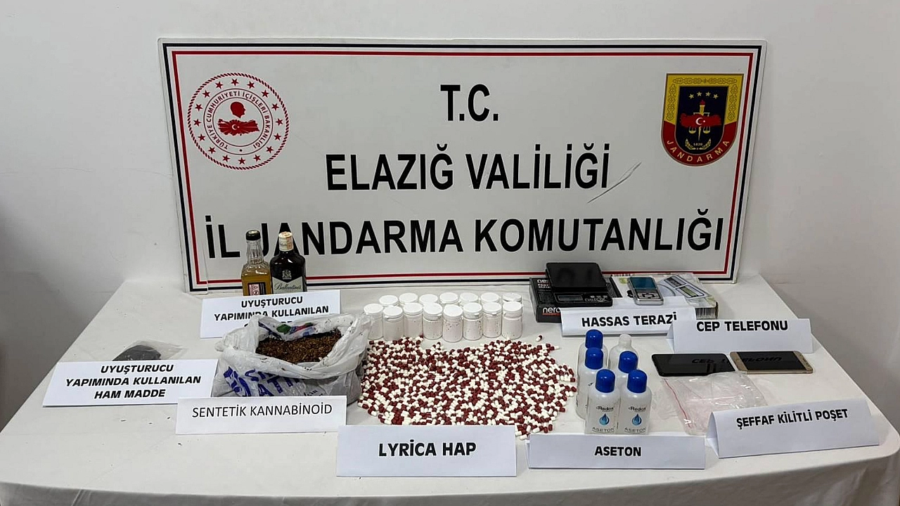 Elazığ İl Jandarma Komutanlığı ekiplerince uyuşturucu imal ve ticaretine yönelik yürütülen çalışmalar kapsamında Merkez ilçe sorumluluk bölgesinde H.A. ve B.K. isimli şahıslara ait iki adrese operasyon düzenlendi.