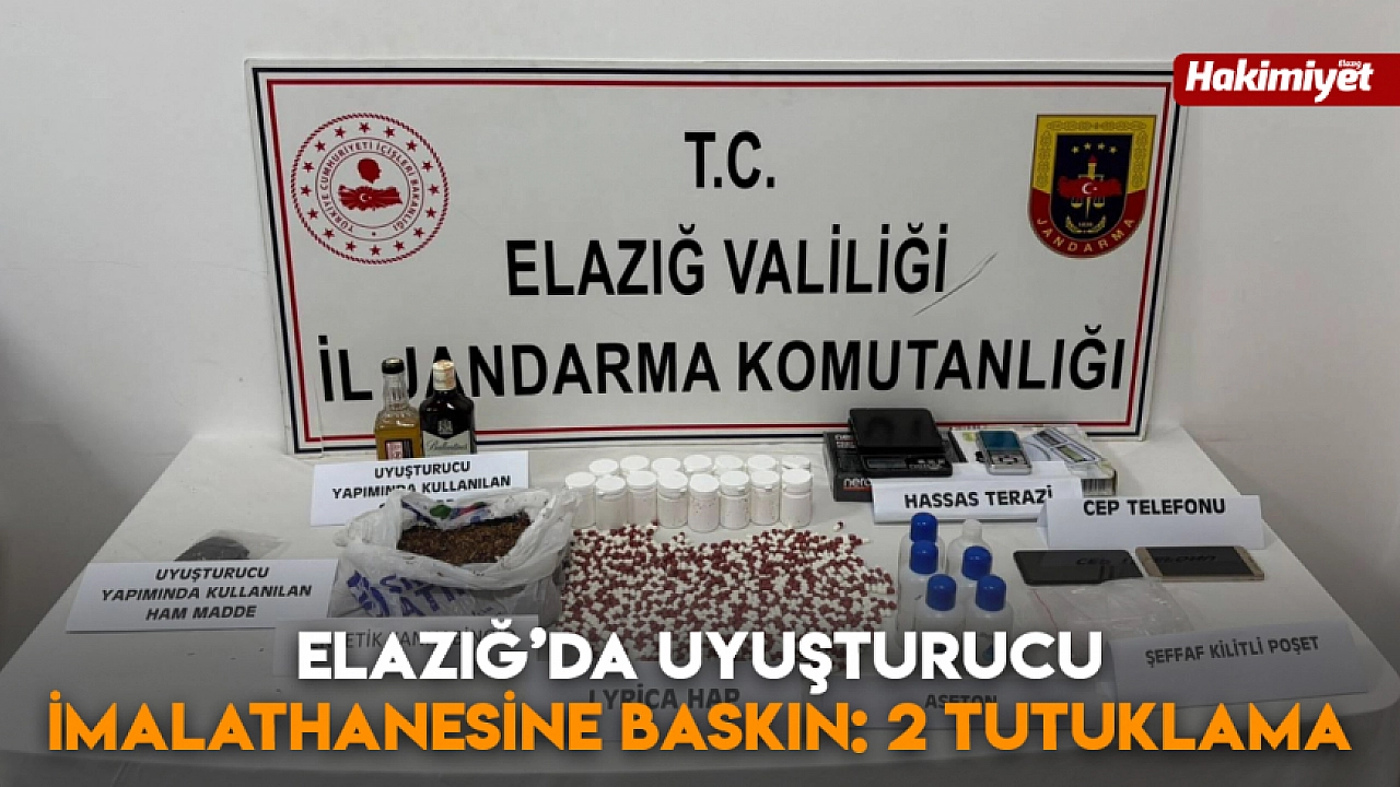 Elazığ İl Jandarma Komutanlığı ekiplerinin Merkez'de belirlenen iki adrese düzenlediği operasyonda kilolarca uyuşturucu madde ve yapımında kullanılan malzemeler ele geçirildi. Gözaltına alınan 2 şüpheli çıkarıldıkları mahkemece tutuklandı.