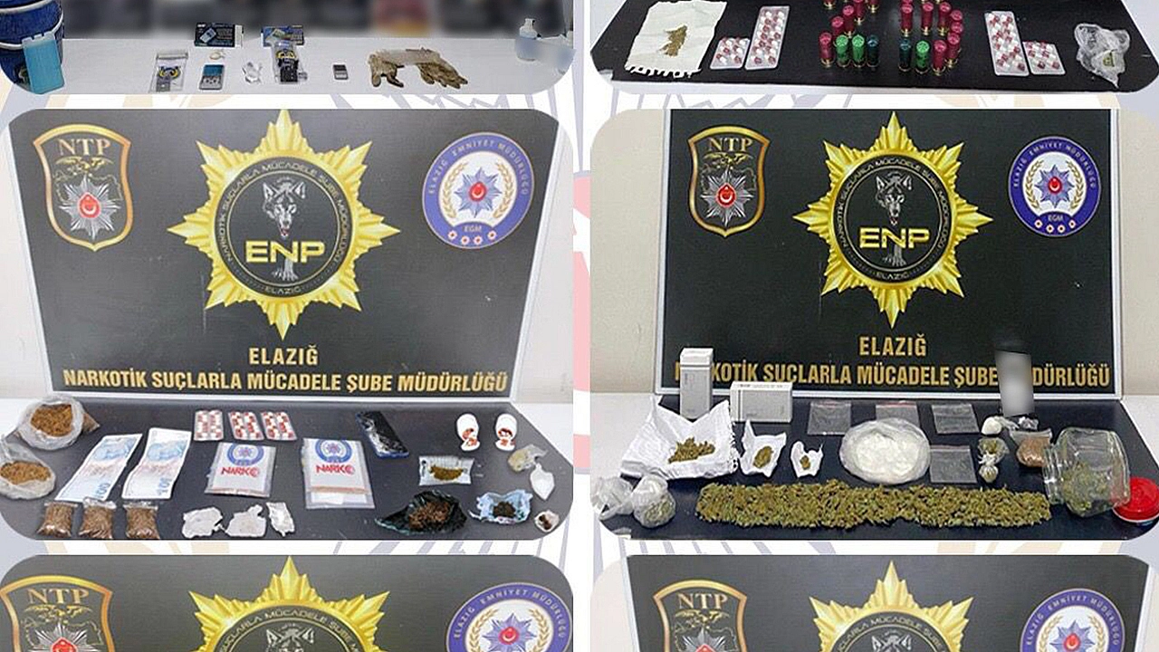 Elazığ Cumhuriyet Başsavcılığı koordinesinde İl Emniyet Müdürlüğü Narkotik Suçlarla Mücadele ve Asayiş Şube Müdürlüğü ekiplerinin son bir ayda yürüttüğü uyuşturucu ile mücadele operasyonlarında çok sayıda uyuşturucu madde ve silah ele geçirildi. Kent genelinde eş zamanlı düzenlenen operasyonlarda 80 parça halinde 3 kilo 85 gram sentetik kannabinoid, 13 parça halinde 170 gram metamfetamin, 11 parça halinde 141,51 gram esrar, bin 291 adet sentetik ecza, 3 hassas terazi, 1 ruhsatsız pompalı tüfek ve 25 adet kartuş ele geçirildi.