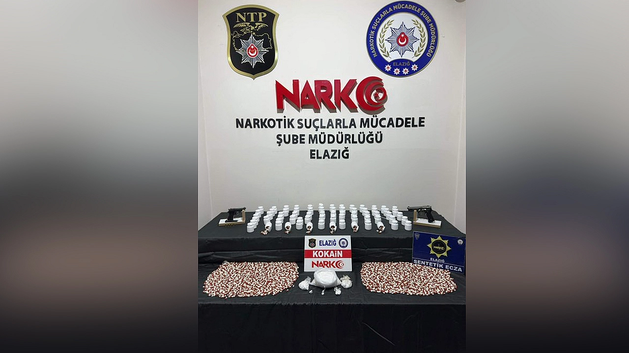 Elazığ İl Emniyet Müdürlüğü Narkotik Suçlarla Mücadele Şube Müdürlüğü ekiplerince uyuşturucu ile mücadele kapsamında düzenlenen operasyonda, yüklü miktarda uyuşturucu madde ve ruhsatsız silah ele geçirildi.