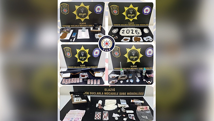 Elazığ Cumhuriyet Başsavcılığı koordinesinde İl Emniyet Müdürlüğü Narkotik Suçlarla Mücadele ve Asayiş Şube Müdürlüğü ekiplerince uyuşturucu ile mücadele ve ruhsatsız silahlara yönelik yılbaşından günümüze kadar çeşitli operasyonlar gerçekleştirildi.