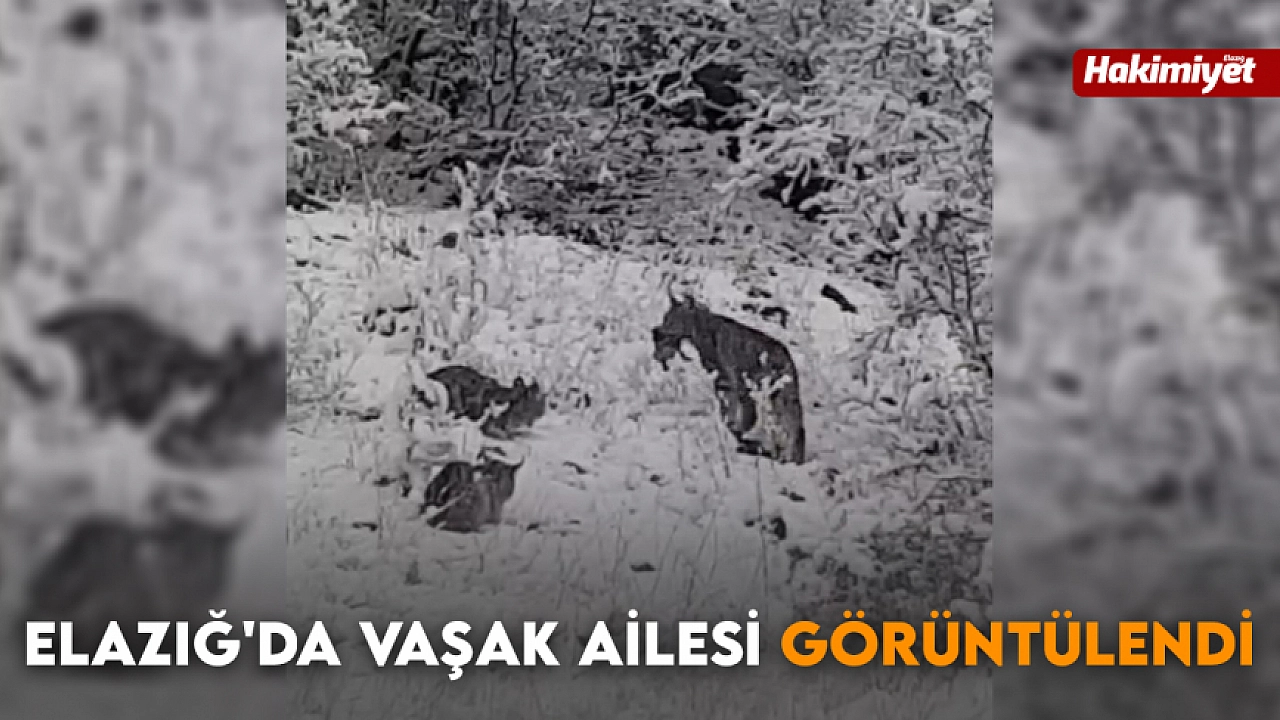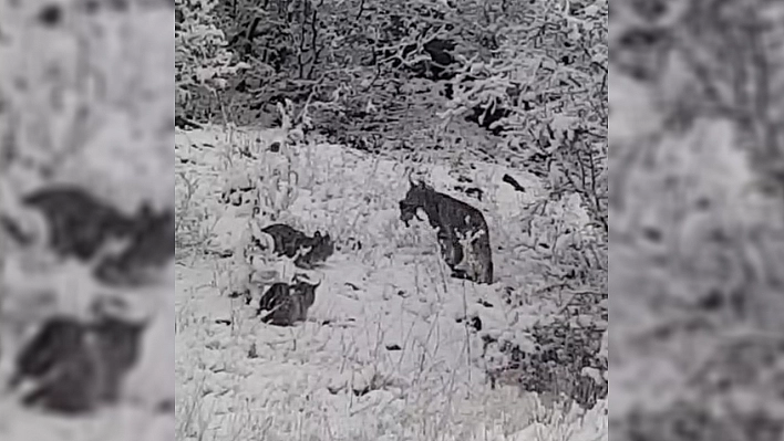 Elazığ'da avladığı kekliği yiyen vaşak ailesi kameralara yansıdı.