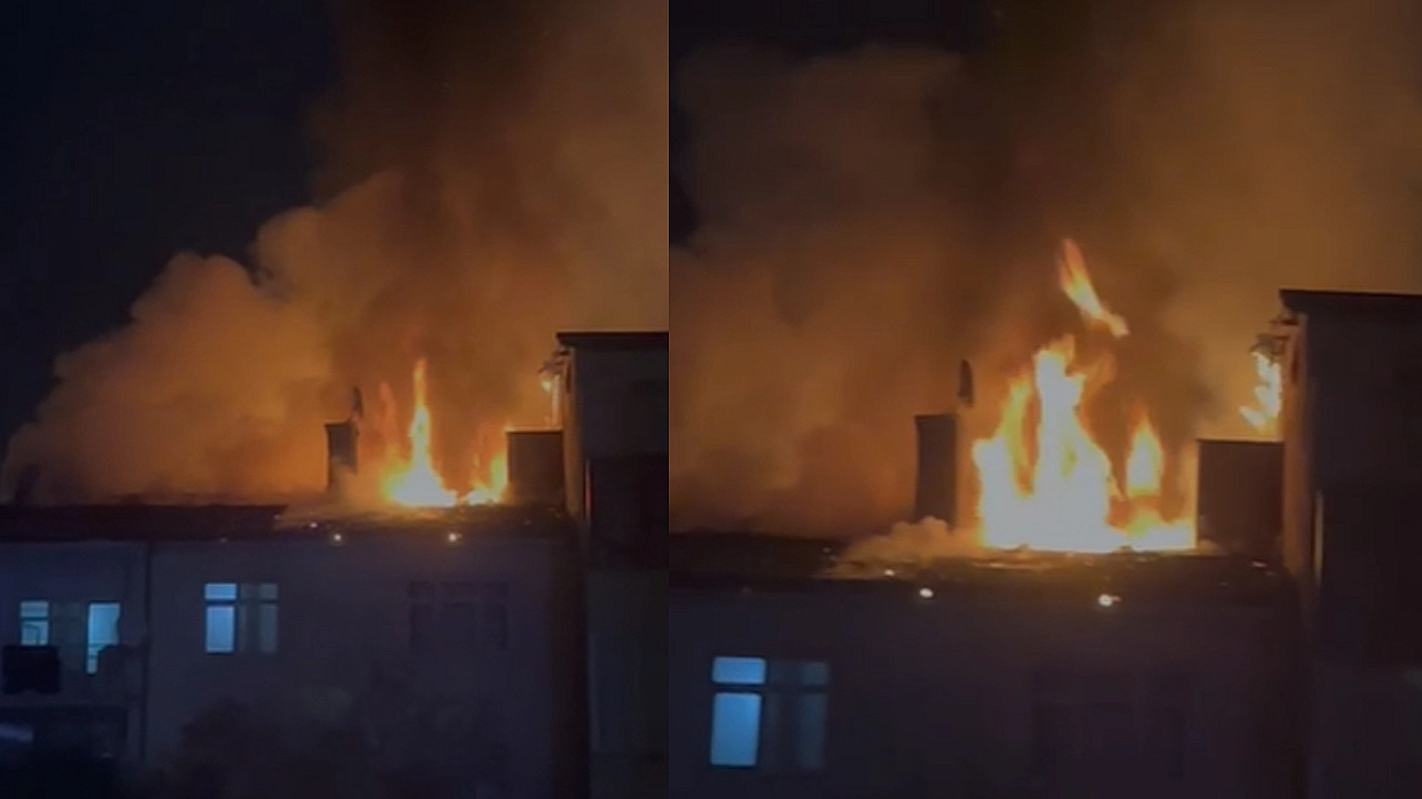 Elazığ'ın Nailbey Mahallesi'nde henüz bilinmeyen bir nedenle bir binanın çatı katında yangın çıktı.