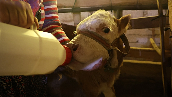 Elazığ'ın Sugözü Mahallesi'nde hayvancılıkla geçimini sağlayan İlhan Cömert'in büyükbaş hayvanı doğum yaparken öldü. Yeni doğan buzağıyı ilk başlarda soğuktan üşümesin diye evinde besleyen Cömert, bir süre sonra büyükbaş hayvanlarının bulunduğu ahıra aldı. Buzağıyı kendi çocuklarından ayırt etmeyen aile, sabah uyanır uyanmaz kendi hayvanlarından sağdıkları sütü buzağıya içirdikten sonra tımarını yapıyor. İlhan Cömert, buzağı kendini toparlayana kadar elleriyle besleyeceklerini belirtti. Cömert, "Bir ay önce buzağımızın annesi doğarken öldü. Biberonla besliyoruz. Hayvan elimizde ölmesin diye diğer hayvanlardan sağdığımız ve dışarıdan aldığımız sütle besliyoruz. Sabah kalktığımızda 3 çocuğum var, buzağıyı da bizim çocuklarımızın yerine koymuşuz. Sabah hemen koşup karnını doyuruyoruz. Sütünü verip tımarını yapıyoruz. Hayvancılığı seviyoruz ama zorlukları da çok fazla. Onu görmesek olmuyor. Buzağı bizim maskotumuz oldu" dedi.