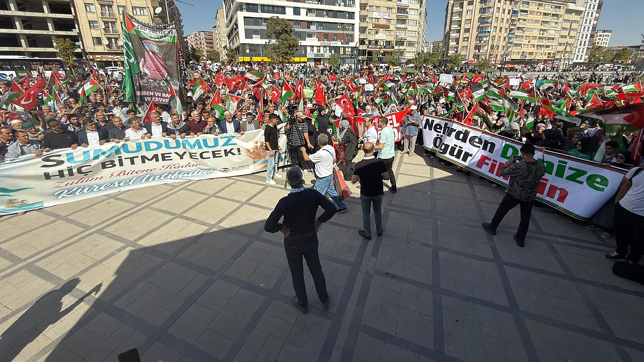 Elazığ'da yüzlerce vatandaş Gazze'de işgal altında bulunan Filistinliler ve onlara uygulanan ambargoyu kırmak için yola çıkan Sumud filosu aktivistlerine destek olmak için yürüdü.