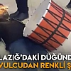 Elazığ'da sıra dışı şovuyla dikkat çeken davulcu, enerjik performansı ve renkli görüntüleriyle düğün davetlilerine unutulmaz anlar yaşattı.