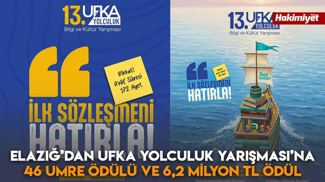 Elazığ İzcilik ve Spor Kulübü tarafından düzenlenen 13’üncü Ufka Yolculuk Bilgi ve Kültür Yarışması, bu yıl “Nasıl İnanmalı?” temasıyla 7-8 Mart tarihlerinde online olarak gerçekleştirilecek. Yarışmada 46 dereceye giren katılımcıya umre ödülü, toplam 6 milyon 200 bin TL para ödülü verilecek.