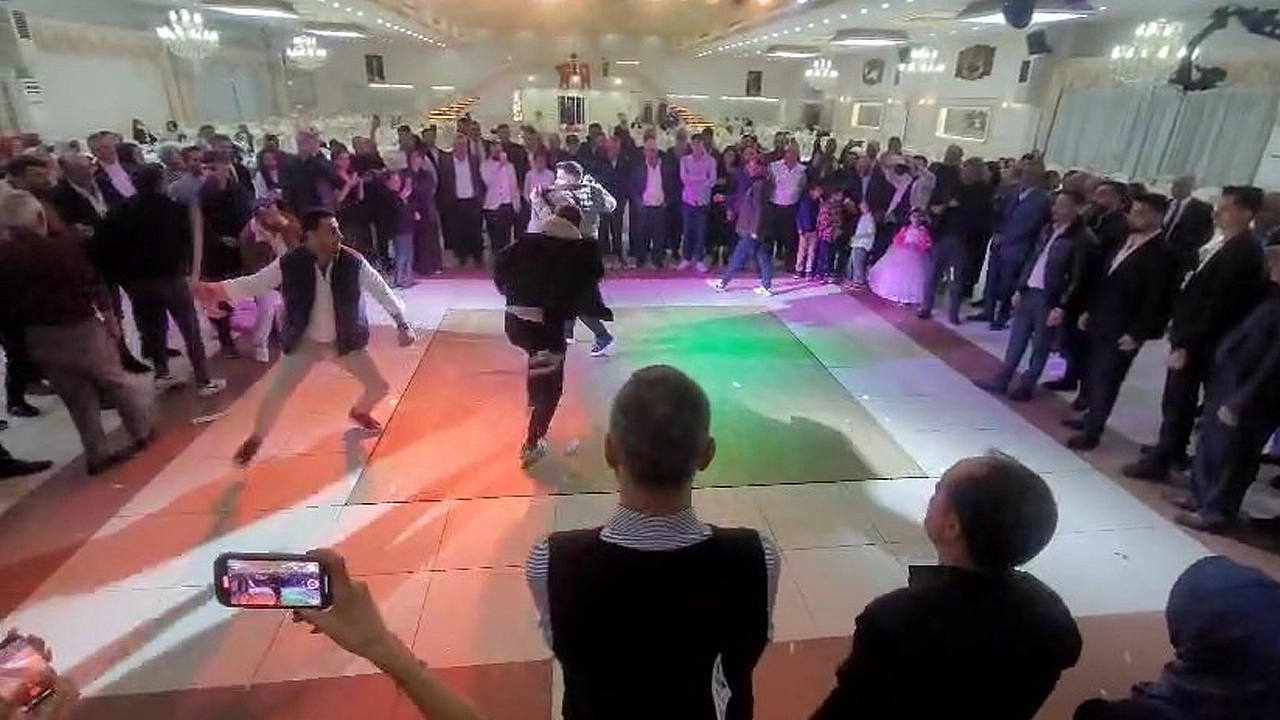 Elazığ düğününde tura oyunu: Birbirlerinin sırtına vurarak oynandı