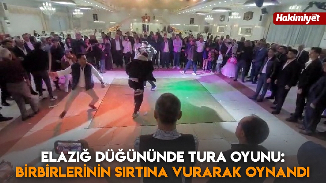 Elazığ'daki bir düğünde Malatya yöresine ait Tura oyunu oynandı. Eline urgan alan oyuncular, davul zurna eşliğinde birbirlerinin sırtına vurarak renkli anlar yaşattı.