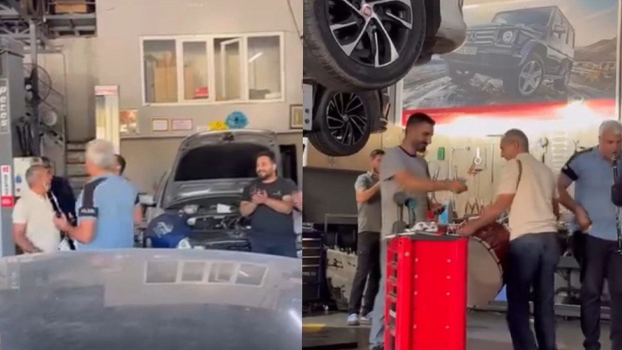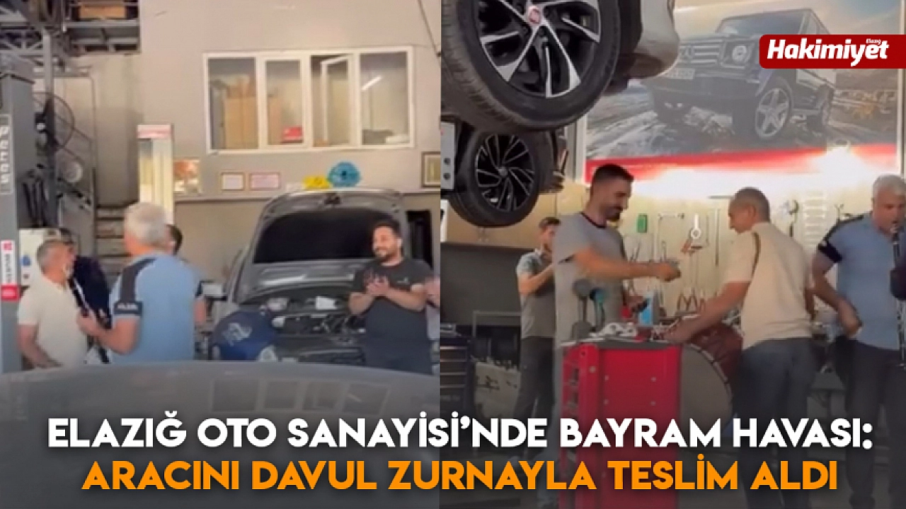 Elazığ Oto Sanayi Sitesi, bugün sıra dışı ve eğlenceli anlara sahne oldu. Aracını tamir için sanayiye bırakan bir vatandaş, beklenenden önce onarımın tamamlandığını öğrenince davul ve klarnet eşliğinde aracını teslim almaya geldi.
