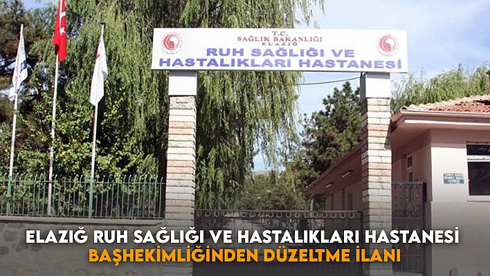 Elazığ Ruh Sağlığı ve Hastalıkları Hastanesi Başhekimliğinden Düzeltme İlanı