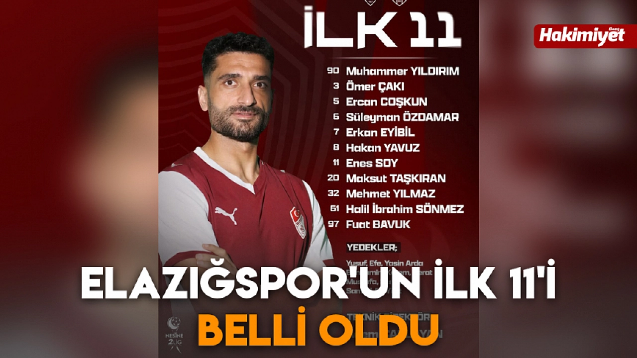 Bordo-Beyazlı temsilcimiz Elazığspor, Sultan Su İnegölspor karşısında mücadele edeceği ilk 11'i açıkladı.