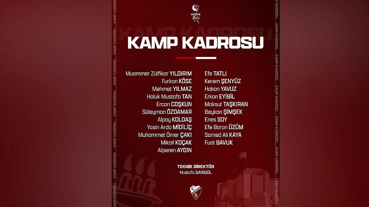 Elazığspor Karacabey Belediye Spor maçı pazar günü 16.00'da karşılaşacak. İşte Elazığspor’un kamp kadrosundaki isimler,
