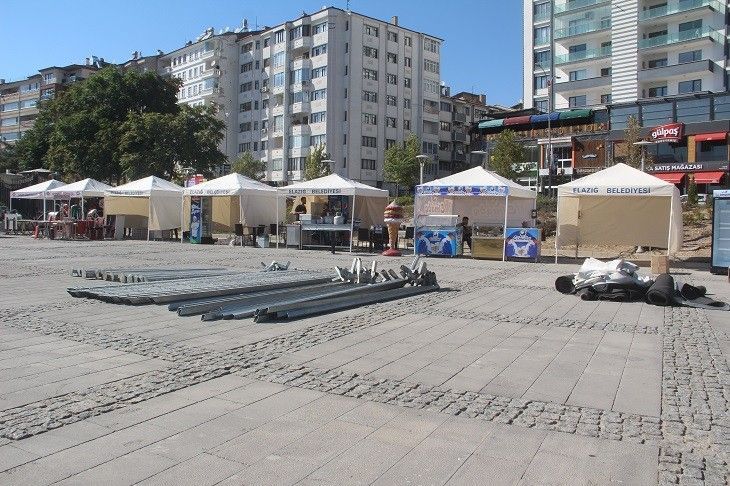 Birincisi 2018 yılında yapılan 3. Salçalı Köfte Festivali için esnaflara tahsis edilmek amacıyla Valilik Meydanında stantlar kurulurken Elazığlılar 3 gün boyunca düzenlenecek etkinliklerle güzel anlar yaşayacaklar.