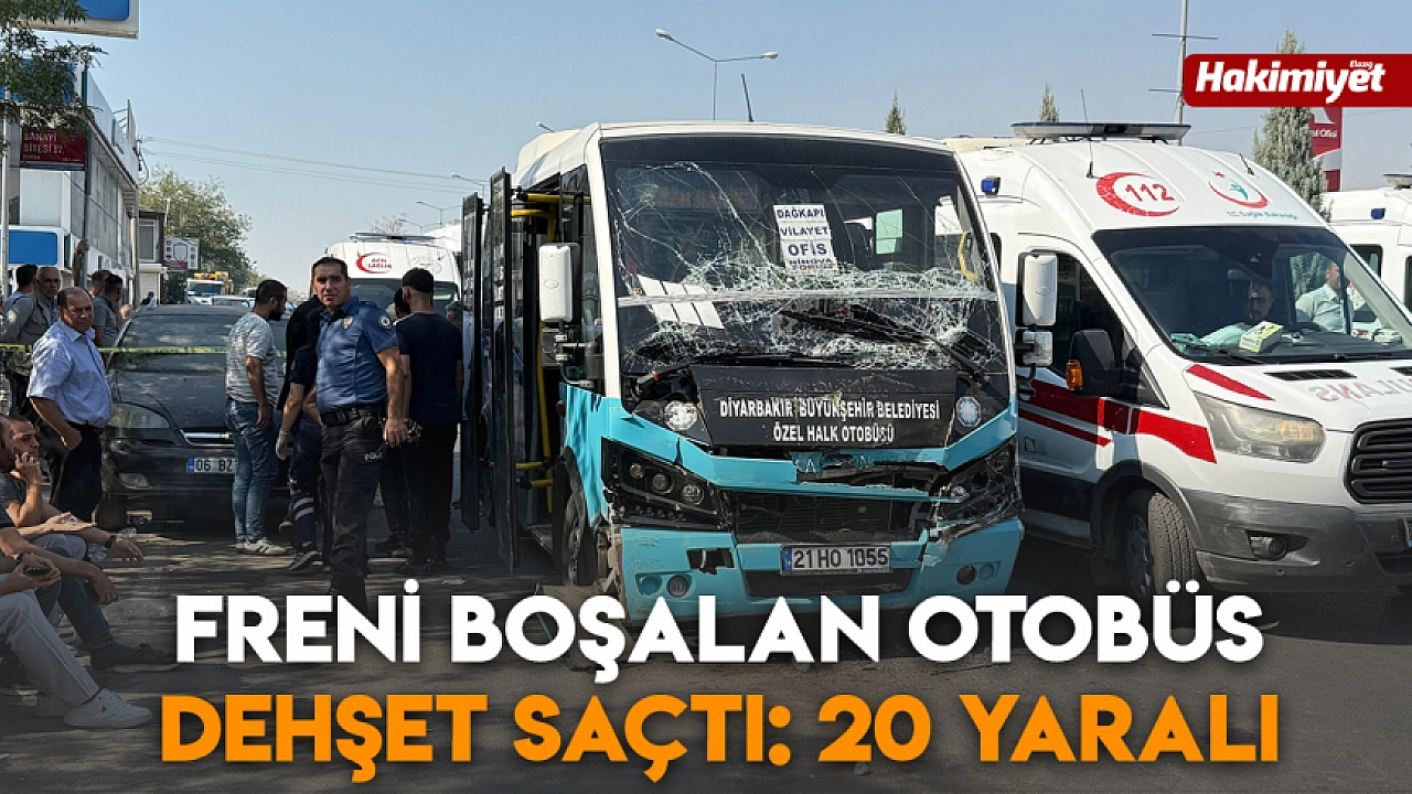 Diyarbakır'ın Yenişehir ilçesinde freni patlayan halk otobüsünün durakta beleyen başka halk otobüsüne çarpması sonucu ilk belirlemelere göre aralarında çocukların da olduğu 20 kişi yaralandı.