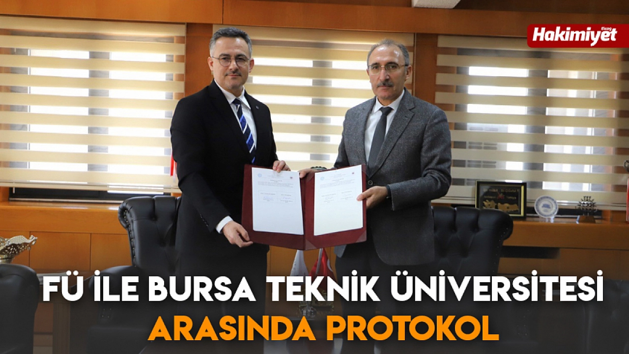 FÜ ile Bursa Teknik Üniversitesi arasında, başta sanayi olmak üzere birçok alanda ortak çalışmaları güçlendirmek amacıyla "İşbirliği Protokolü" imzalandı. İki üniversite arasında hazırlanan protokol, FÜ Rektörü Prof. Dr. Fahrettin Göktaş ile Bursa Teknik Üniversitesi Rektörü Prof. Dr. Naci Çağlar tarafından imza altına alındı. Protokol ile akademik, bilimsel ve uygulamalı alanlarda ortak projelerin hayata geçirilmesi hedefleniyor. İmzalanan protokol kapsamında FÜ, Bursa Teknik Üniversitesi ve AR-GE Merkezleri iş birliğinde araştırma-geliştirme faaliyetlerinin yürütülmesi, sanayi odaklı çalışmaların artırılması ve bilgi paylaşımının güçlendirilmesi amaçlanıyor.