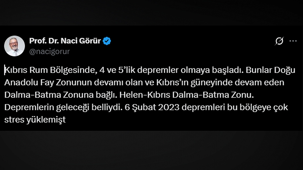 Akdeniz'de 5.2 şiddetinde bir deprem meydana geldi. deprem sonrası Prof. Dr. Naci Görür depreme ilişkin açıklamalarda bulundu.