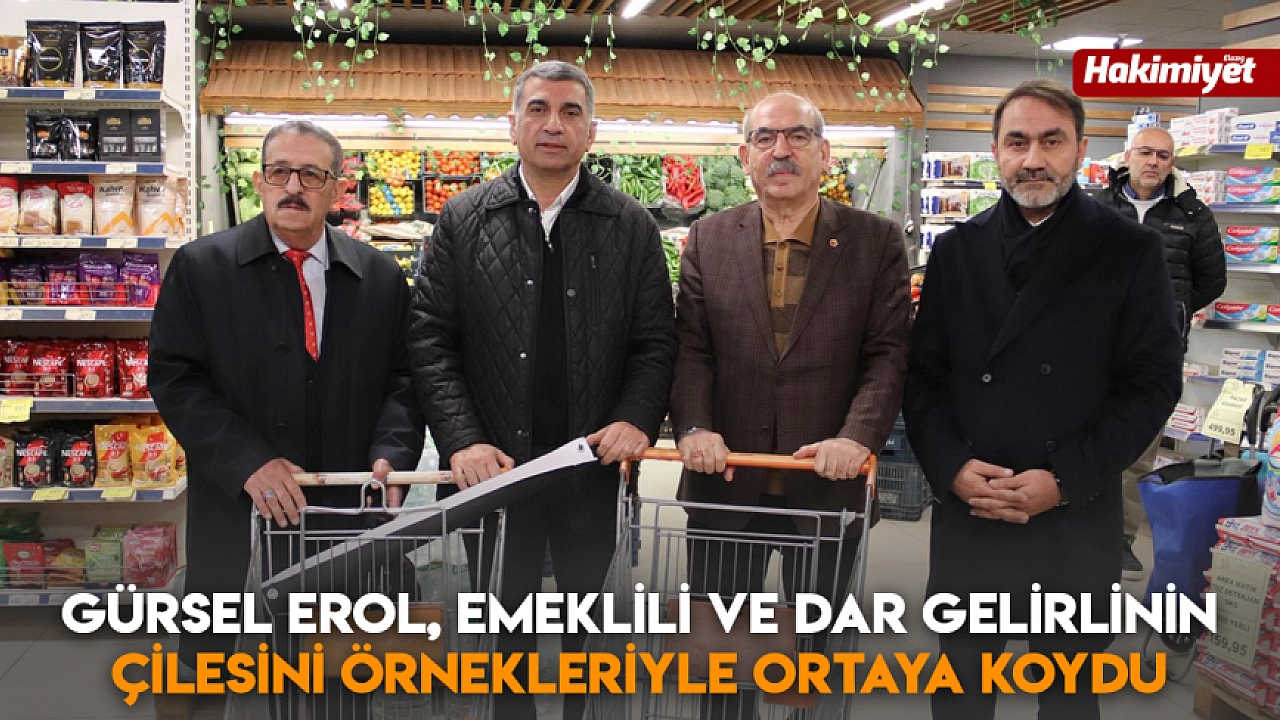 Emekli maaşlarının yetersizliğini Meclis'te gündeme getiren Gürsel Erol, Elazığ'da da Tüm Emekçiler Derneği Başkanı Mehmet Kayabaş, Türkiye Emekliler Derneği Başkanı Vedat Gür ve CHP Elazığ İl Başkanı Coşkun Çağlar Duran bir ailenin bir haftalık market alışverişinin ortalama 8 bin TL olmasını eleştirdi.