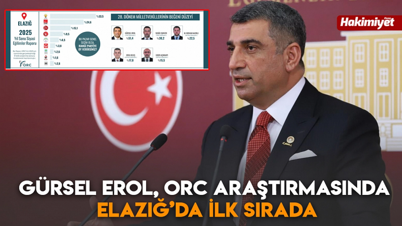ORC Araştırma'nın 2025 yılı içerisinde Elazığ'da gerçekleştirdiği kamuoyu yoklamasında, CHP Elazığ Milletvekili Gürsel Erol yüzde 51,4 beğeni oranıyla 28. Dönem Elazığ milletvekilleri arasında ilk sırada yer aldı.