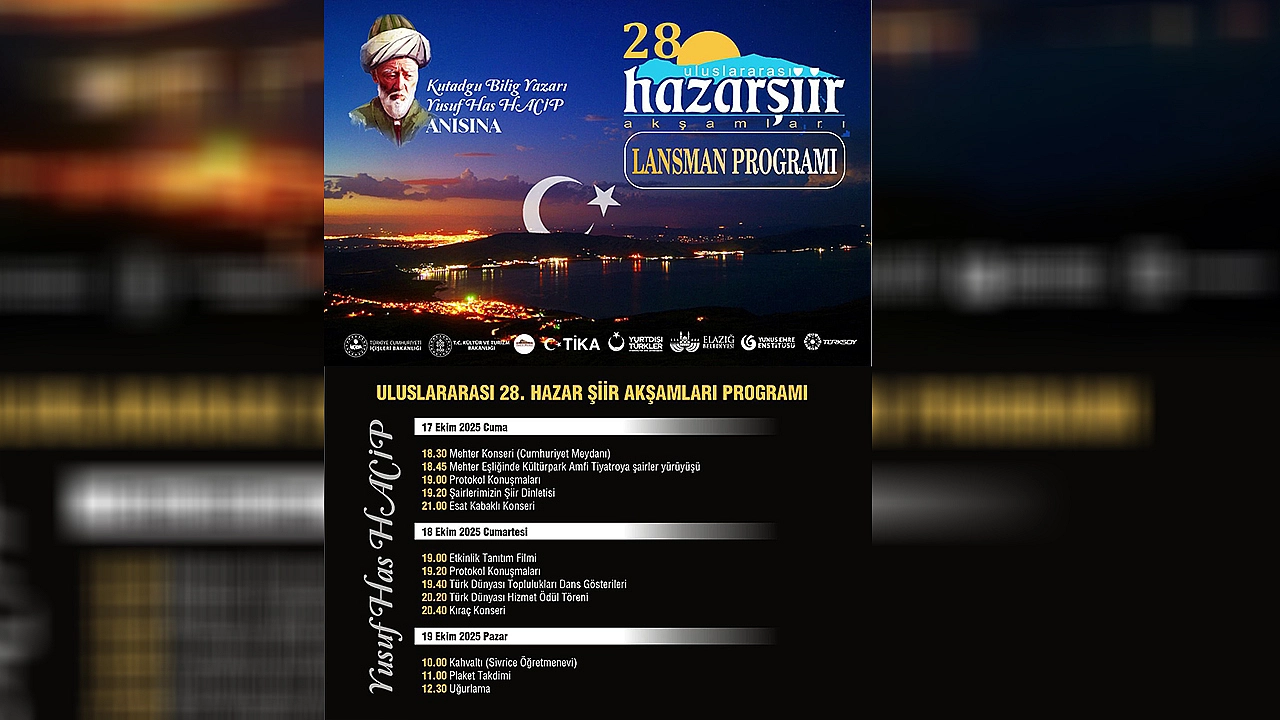 Ayrıca Türk Devletleri Teşkilatı da organizasyona katkı sunacak. Üç gün sürecek 28. Uluslararası Hazar Şiir Akşamları, Elazığ’ın kültür, sanat ve kardeşlik dolu ruhunu bir kez daha tüm dünyaya duyuracak. Şiirin, müziğin ve dostluğun buluşacağı bu büyük etkinlik, Elazığ’ı bir kez daha Türk dünyasının kültürel kalbi haline getirecek.