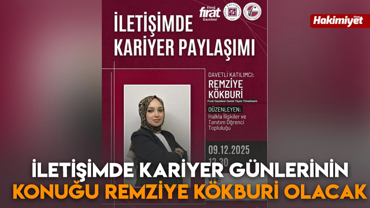 Fırat Üniversitesi İletişim Fakültesi tarafından düzenlenen ve ilgiyle takip edilen Kariyer Günleri etkinliğinin konuğu bu kez başarılı gazeteci Remziye Kökburi olacak.
